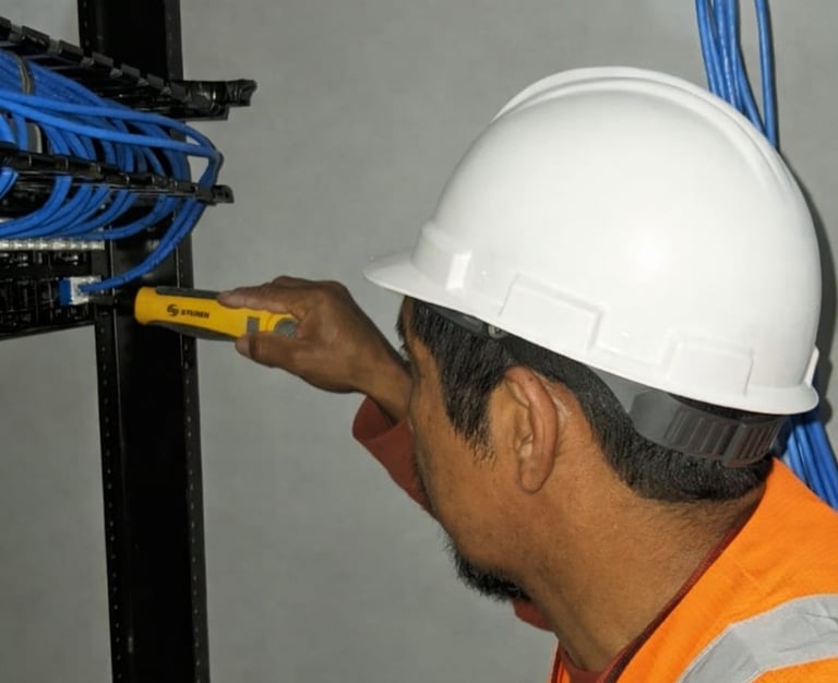 Infraestructura de conectividad y cableado estructurado. Instalamos nodos de red, fibra óptica y sistemas WiFi de alto rendimiento (Ubiquiti), asegurando la velocidad y estabilidad que su empresa requiere.